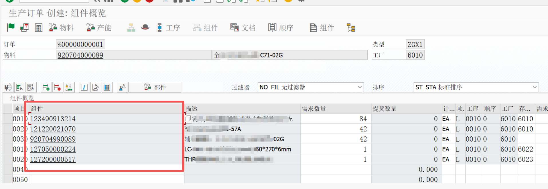 SAP PCE中新建的生产订单组件不能修改,如下截图