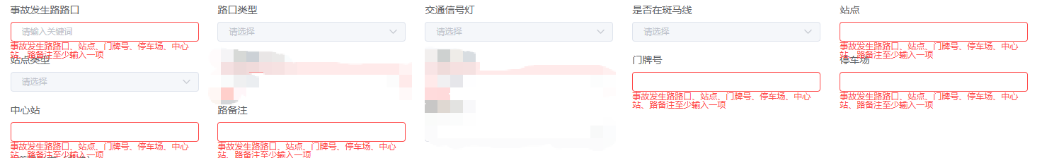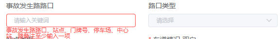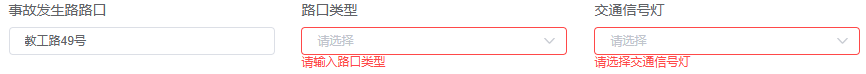 如下表单,事故发生路路口未填的时候,路口类型及交通信号灯是禁用状态,当填了值之后,后面表单箱就需要进行必填校验