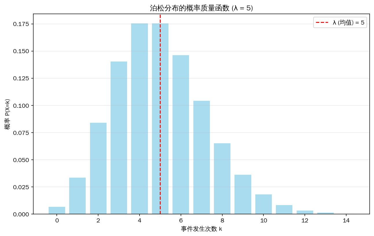 λ 是常数: 必须确保事件发生的平均速率 λ 在观察期间是恒定的。例如,不能用“一天”的平均通话量来精确计算“凌晨3点-4点”的通话量,因为速率在一天内是变化的。