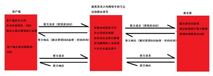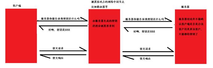 - 但黑客也拥有这个密钥,因此可以轻松解密所有客户端和服务器之间的通信,甚至篡改数据。这就是中间人攻击的成功。