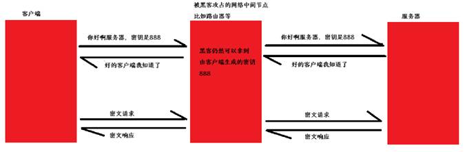 上述的通信模型存在一个致命的风险,黑客可以凭借这个致命的风险进行攻击