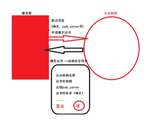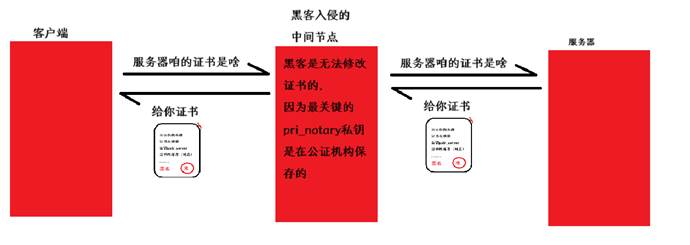 对于低一点的 身份证明体系,我们引入证书这个概念,证书是由第三方的合法公证机构颁发给服务器的