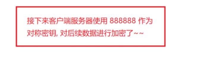 - 现在,客户端和服务器都拥有相同的对称密钥“888”,并开始使用它进行加密通信。
