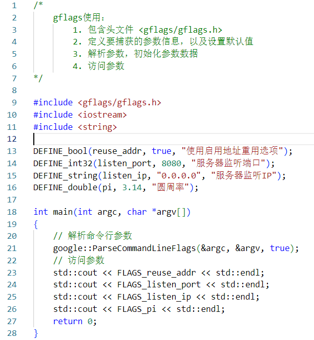 在程序执行前,需要先用宏定义一些会用到的参数,便于后续在程序中用 gflags 的宏获取参数。