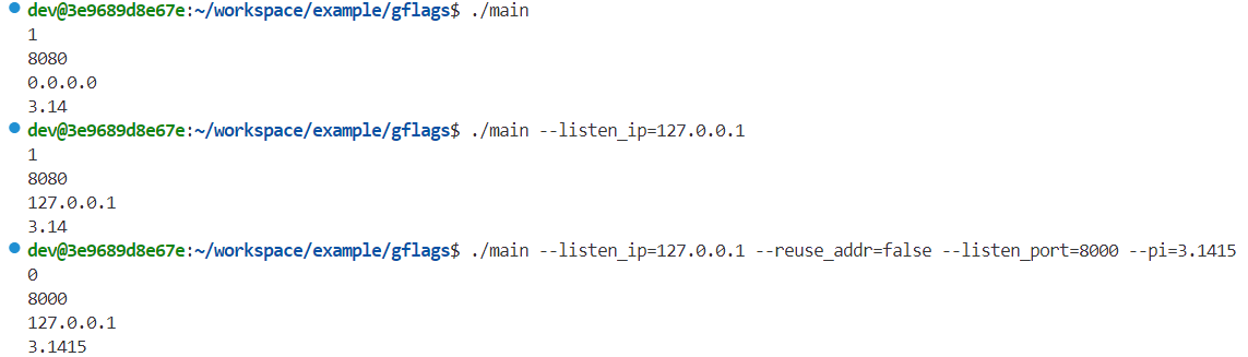 在程序中使用 FLAGS_定义的命令行参数名来获取指定参数。
