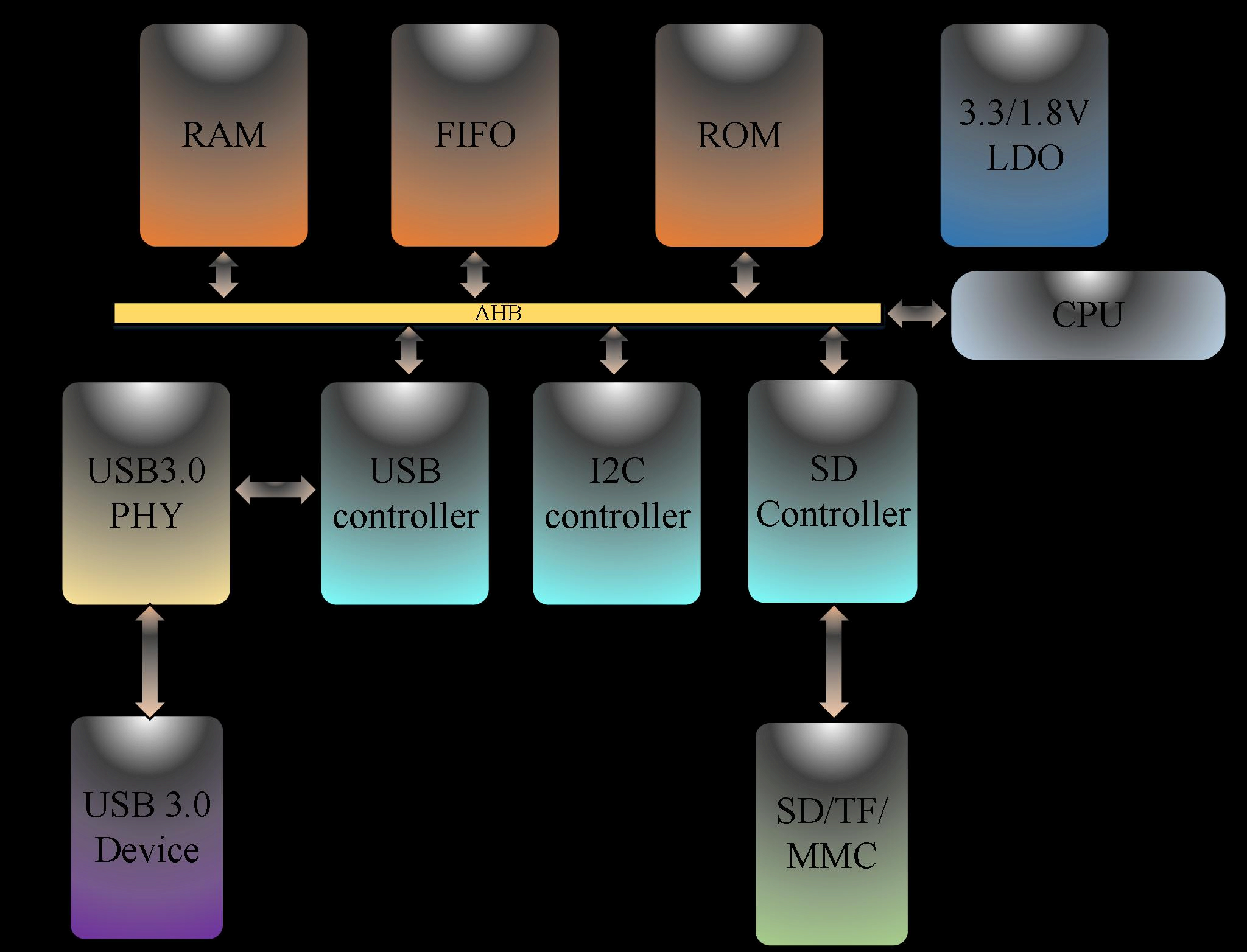 SD控制器: 符合SD 3.0规范 符合eMMC 4.5+规范 支持SDx4与eMMCx8总线宽度