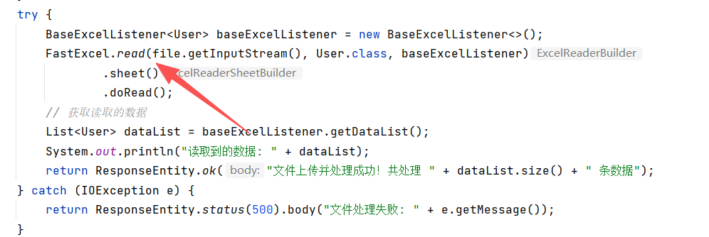 监听器的作用也可以理解为FastExcel 内部封装的一个兼具数据读取,数据缓存,数据转换为一体的组件,有了这个监听器,上层只需要在上传或下载excel的时候代入进去,该监听器就可以发挥作用,从而完成数据的转换。参考下面的代码。