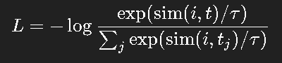 for (image, text) in dataset:img_vec = ImageEncoder(image)txt_vec = TextEncoder(text)loss = contrastive_loss(img_vec, txt_vec)