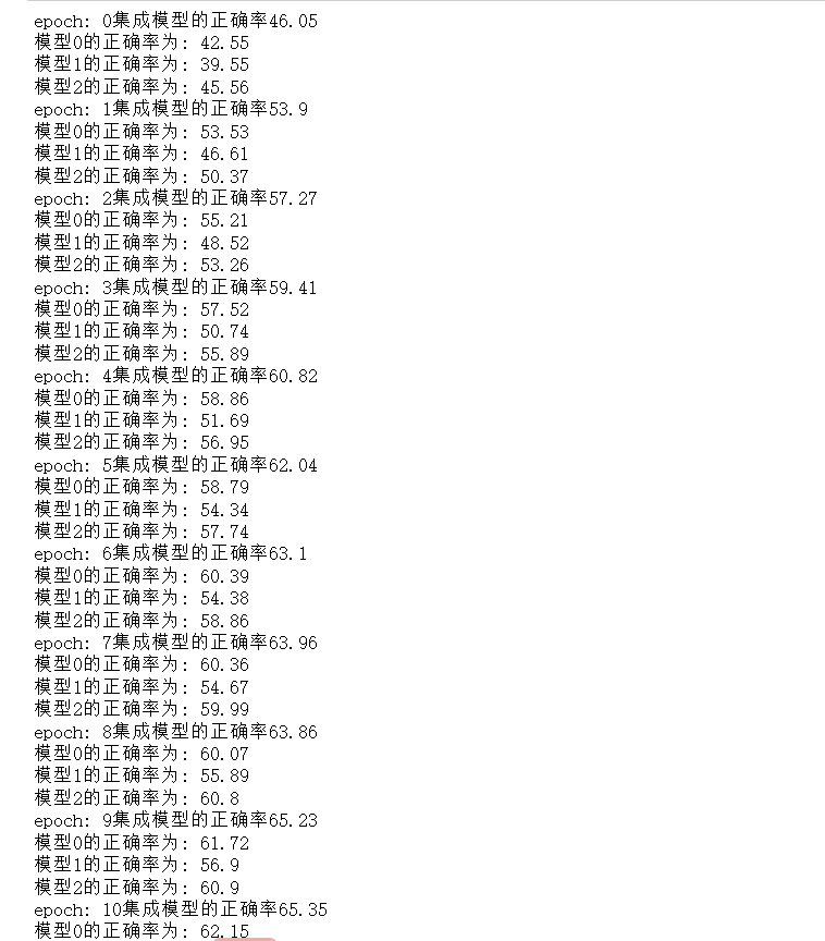 单个简单模型(如 CNNNet、LeNet)在 CIFAR-10 上的准确率通常在 50%-60% 区间。