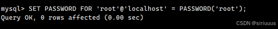 SET PASSWORD FOR 'root'@'localhost' = PASSWORD('root');