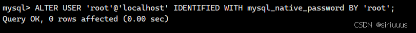 ALTER USER 'root'@'localhost' IDENTIFIED WITH mysql_native_password BY 'root';