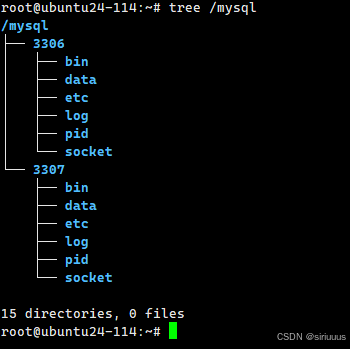 mkdir -pv /mysql/{3306,3307}/{data,etc,socket,log,bin,pid}