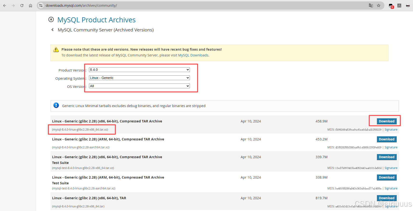 https://downloads.mysql.com/archives/get/p/23/file/mysql-8.4.0-linux-glibc2.28-x86_64.tar.xz