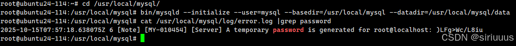 如果使用 --initialize 选项会生成随机密码,要去 /data/mysql/mysql.log中查看