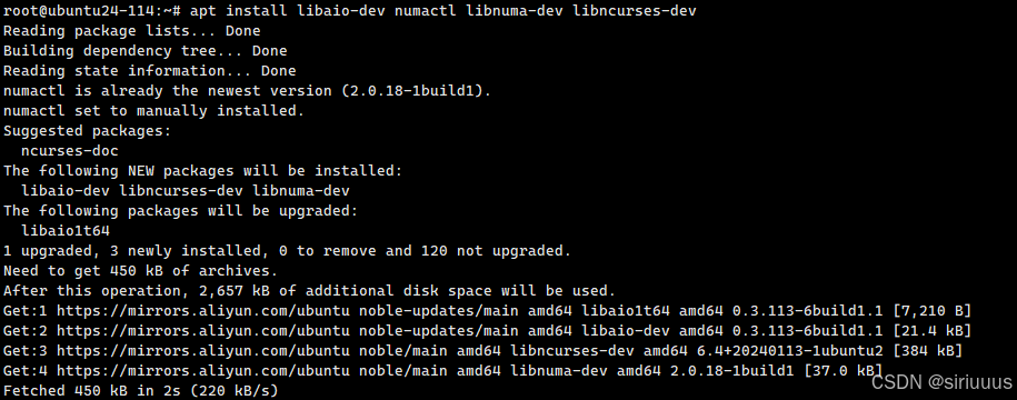 apt install libaio-dev numactl libnuma-dev libncurses-dev
