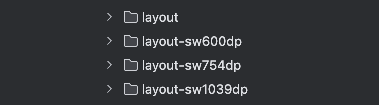 layout-sw600dp 表示「最小宽度 ≥ 600dp」的设备会优先加载该文件夹的布局