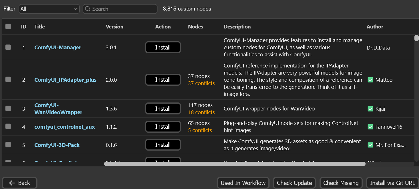 具体节点文件存放在comfyui/custom_nodes中,确保每个节点之间不会存在依赖冲突。