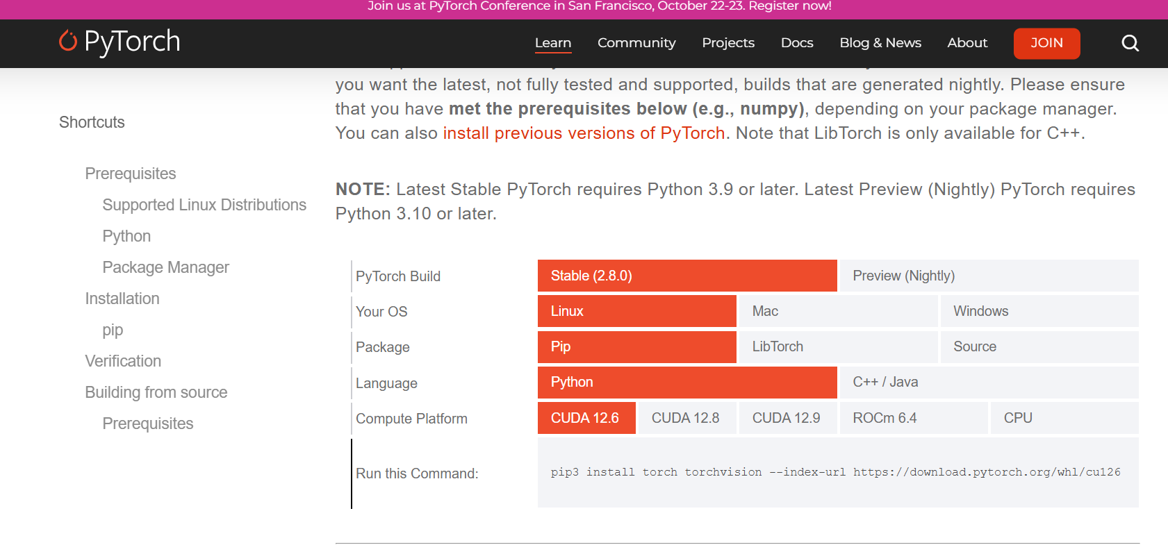 pip3 install torch torchvision --index-url https://download.pytorch.org/whl/cu126