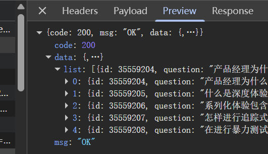 的请求。点击这些请求,在 Preview 或 Response 标签页中查看返回的数据,确认是否包含视频列表。