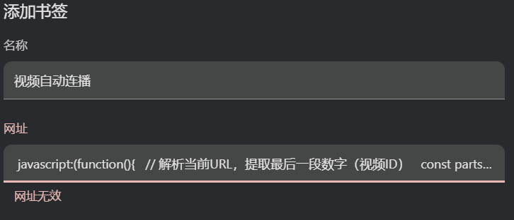 原因:浏览器对书签中 JavaScript 代码的格式要求比较严格,需要确保代码是一个完整、紧凑的 JavaScript 语句,不能有多余的注释、换行等影响格式的内容。