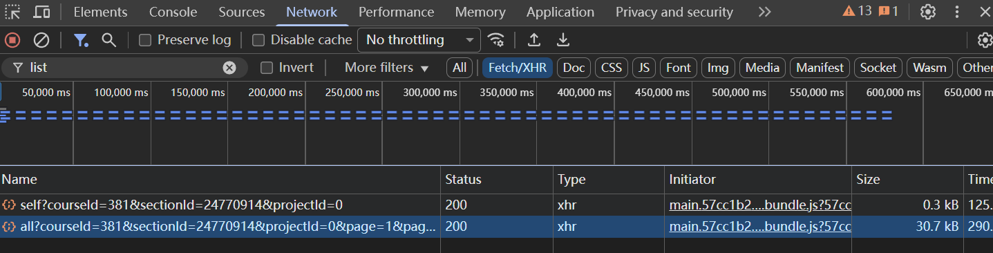 网络请求列表中,寻找包含以下关键词的请求: