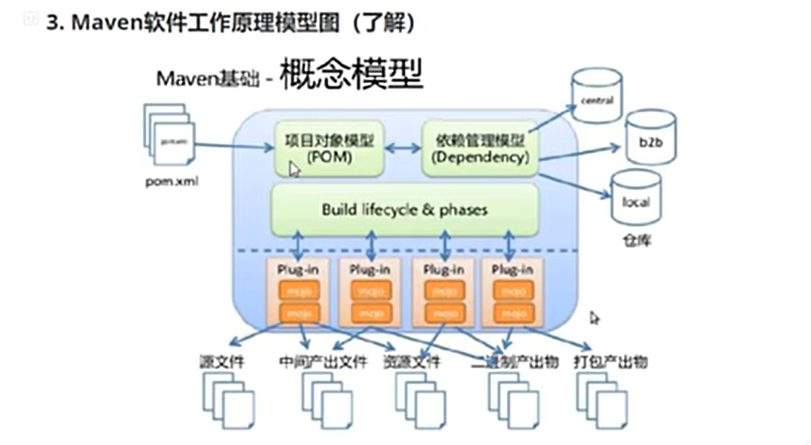 四.maven的工作原理模型图: