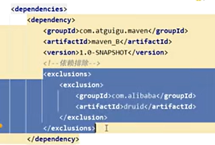 使用exclusions标签进行依赖的排除,不需要加version版本号