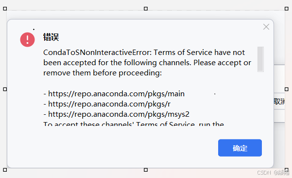 conda tos accept --channel https://repo.anaconda.com/pkgs/r # 接受 msys2 频道