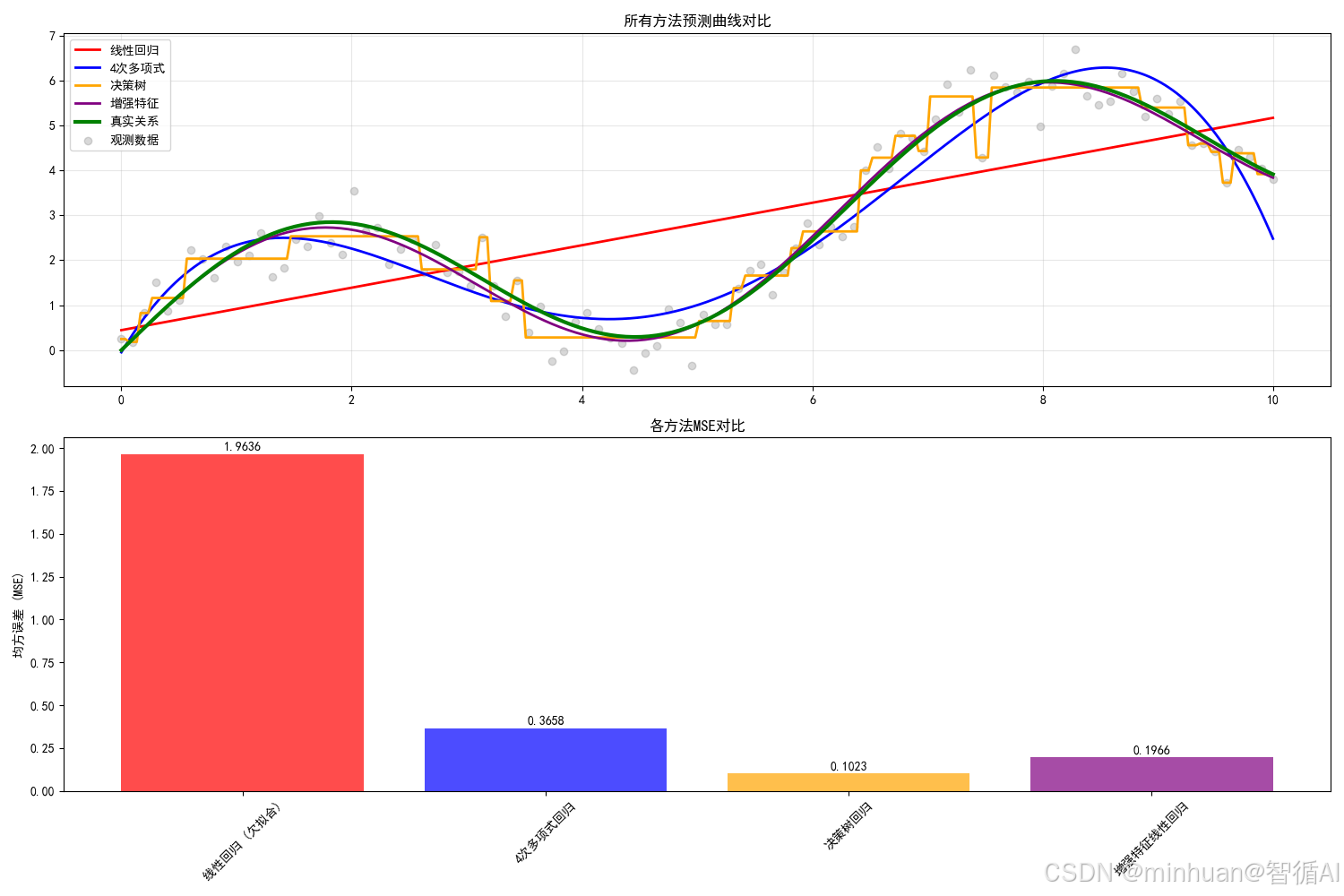sorted_methods = sorted(methods.items(), key=lambda x: x[1][1])print("方法名称 | 训练MSE | 测试MSE | 泛化差距 | 测试改进%")
