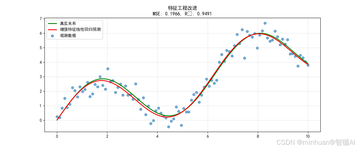 plt.show()print(f"线性模型训练MSE: {mean_squared_error(y_noisy, y_pred_linear):.4f}")