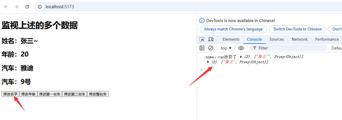 }watch([() => person.name, () => person.car], (newValue, oldValue) => {console.log("name,car改变了", newValue, oldValue)