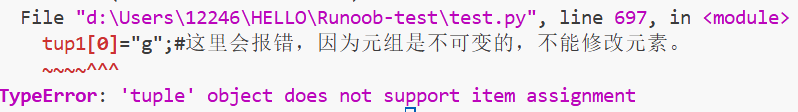tup1[0]="g";#这里会报错,因为元组是不可变的,不能修改元素。