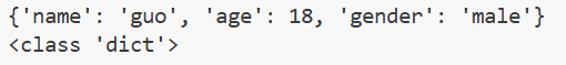 dict1=dict(name="guo",age=18,gender="male");#这里用dict()函数创建,注意内部和用大括号不一样