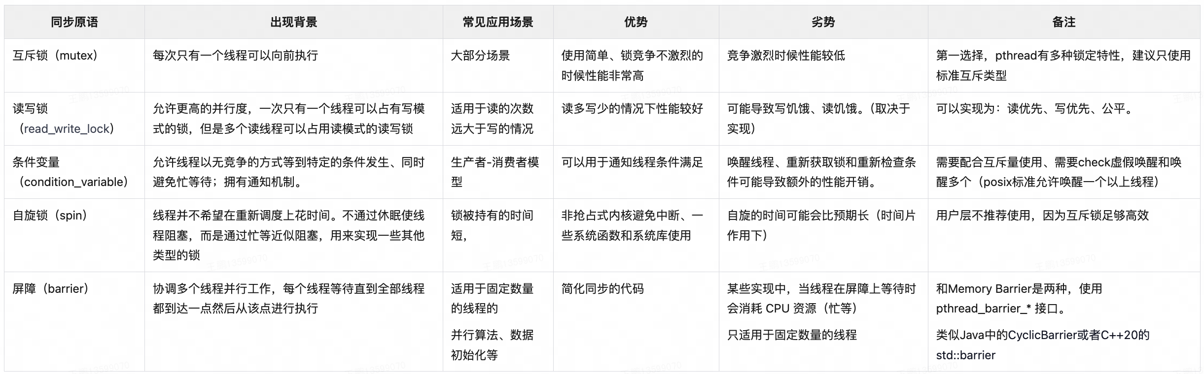 pthread接口提供的几种同步原语如下:
