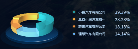 const getPie3D = (pieData: any[], internalDiameterRatio: number) => {let series: any[] = []let sumValue = 0let startValue = 0let endValue = 0const k = 1 - internalDiameterRatiopieData.forEach(item => sumValue += item.value)pieData.forEach((item) => {endValue = startValue + item.valueitem.startRatio = startValue / sumValueitem.endRatio = endValue / sumValuestartValue = endValueseries.push({name: item.name,type: 'surface',parametric: true,shading: 'realistic',wireframe: { show: false },itemStyle: { ...item.itemStyle },pieData: item,pieStatus: { selected: false, hovered: false, k },parametricEquation: getParametricEquation(item.startRatio, item.endRatio, false, false, k, item.value),})})return {tooltip: {formatter: (params: any) => {if (params.seriesName !== 'mouseoutSeries' && params.seriesName !== 'pie2d') {const bfb = ((series[params.seriesIndex].pieData.endRatio - series[params.seriesIndex].pieData.startRatio) * 100).toFixed(2)return (`${params.seriesName}<br/>` +`<span style="display:inline-block;margin-right:4px;border-radius:50%;width:8px;height:8px;background-color:${params.color};"></span>` +`${bfb}%`)}return ''},},xAxis3D: { min: -1, max: 1 },yAxis3D: { min: -1, max: 1 },zAxis3D: { min: -1, max: 1 },grid3D: {show: false,boxHeight: 10,boxWidth: 100,boxDepth: 100,environment: 'auto',light: {main: { intensity: 1.2, shadow: true },ambient: { intensity: 0.6 },},viewControl: { alpha: 25, distance: 200, rotateSensitivity: 0, zoomSensitivity: 0, panSensitivity: 0, autoRotate: true }},series}
