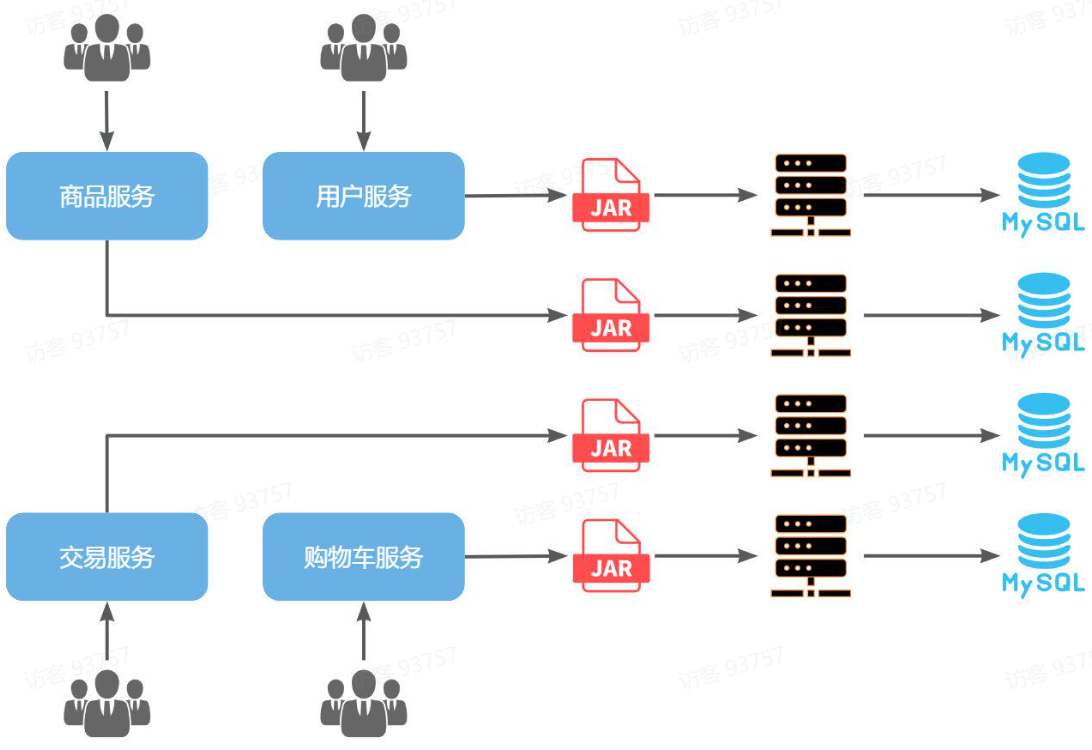 系统可用性差:单体架构各个功能模块是作为一个服务部署,相互之间会互相影响,一些热点功能会耗尽系统资源,导致其它服务低可用。