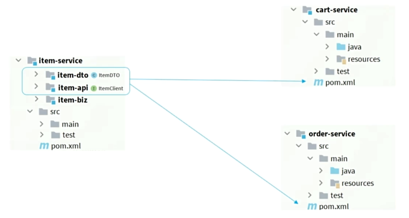 前两节我们实现了使用OpenFeign代替手写“获取服务实例、发送请求并接收”,但是存在一个问题:如果其他模块也要调用item的接口功能,也像前两节一样实现一个FeignClient?每个模块都重写一遍?非常麻烦。