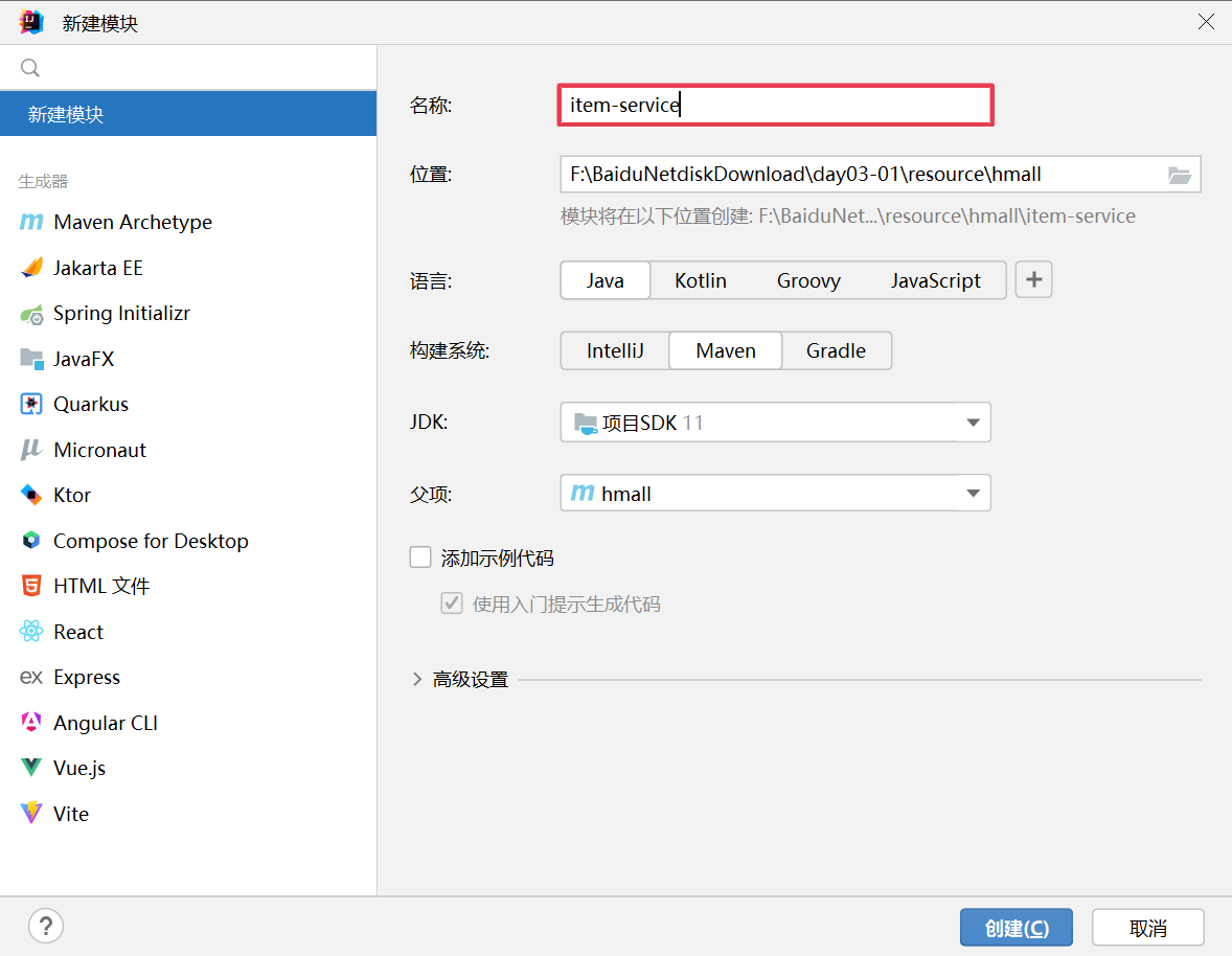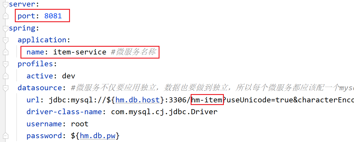 - 将hm-service中与商品管理相关功能拆分到一个微服务module中,命名为item-service