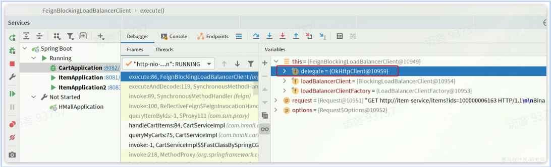 验证:我们可以打断点验证连接池是否生效,在org.springframework.cloud.openfeign.loadbalancer.FeignBlockingLoadBalancerClient