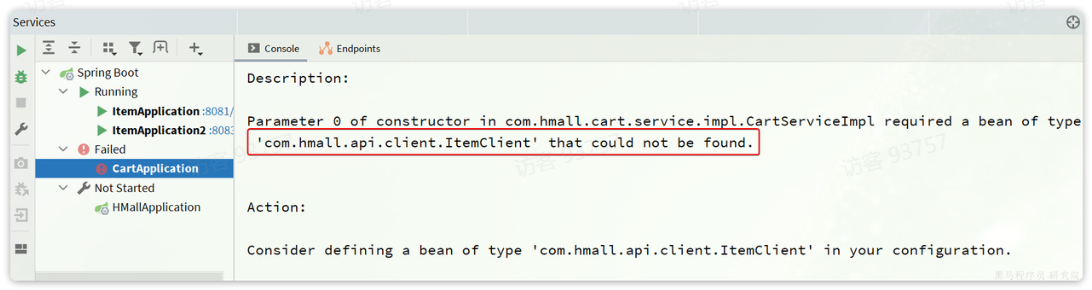 中原来的ItemDTO和ItemClient,重启项目,发现报错了:这里因为