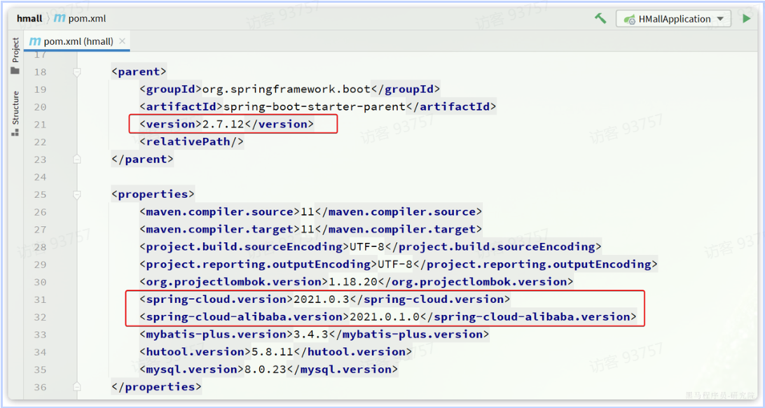 在我们的父工程hmall中已经配置了SpringCloud以及SpringCloudAlibaba的依赖:这样,我们在后续需要使用SpringCloud或者SpringCloudAlibaba组件时,就无需单独指定版本了。