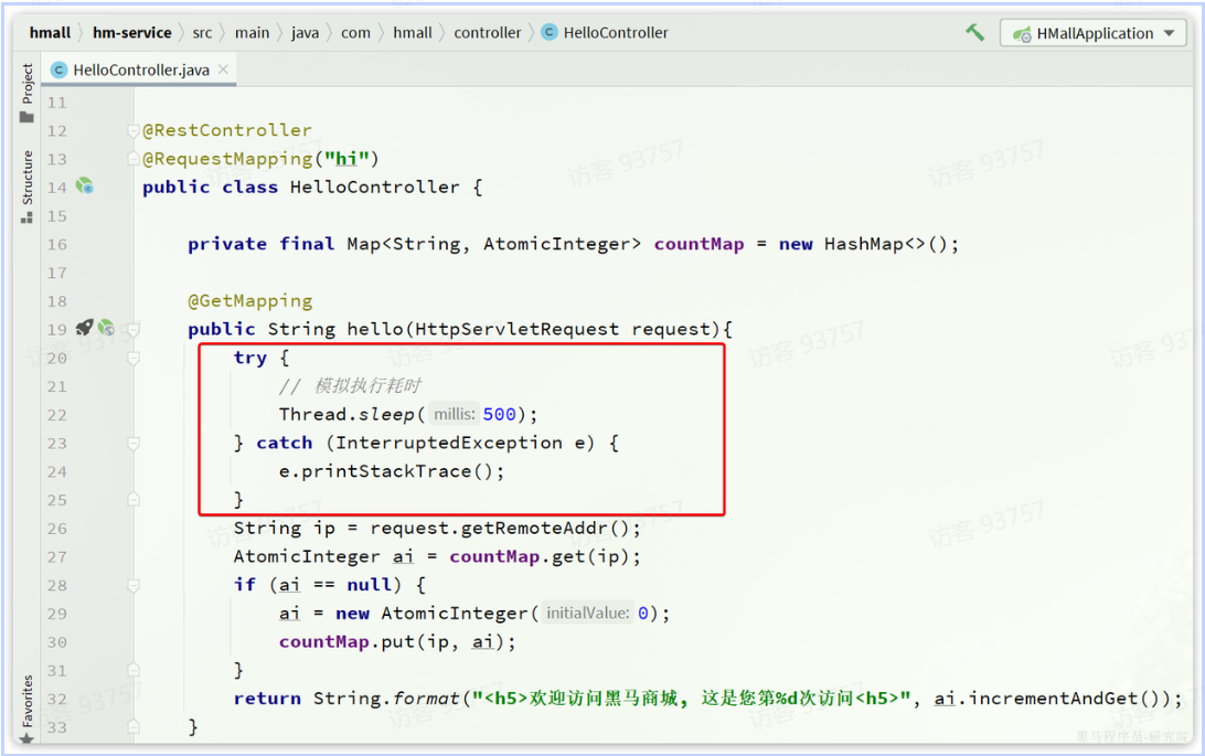 首先,我们修改hm-service模块下的com.hmall.controller.HelloController