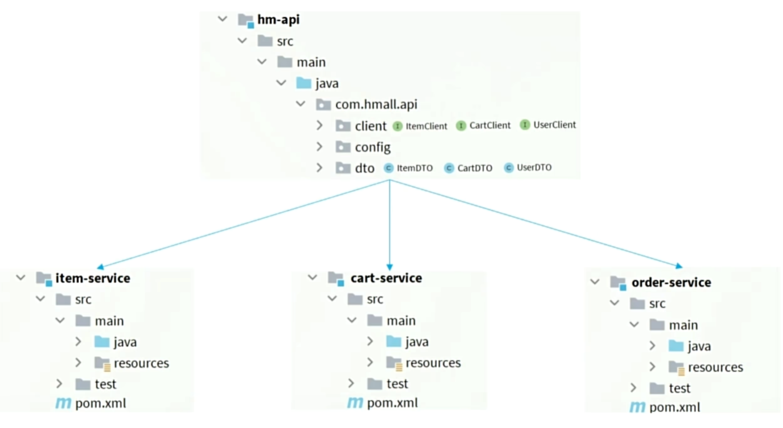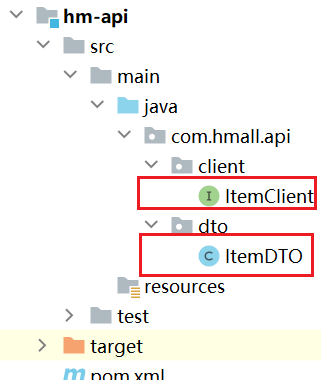 2.将cart-service中的itemDTO和client都复制到hm-api中;向cart-service的pom文件引入hm-api依赖。