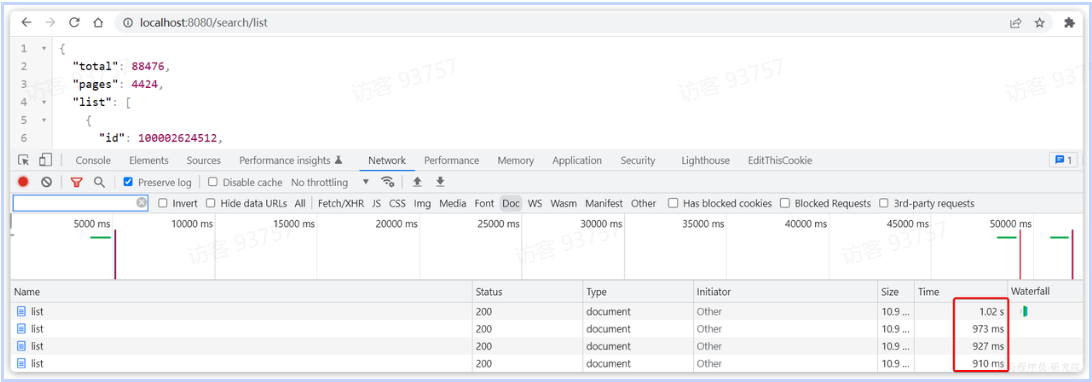 我们测试一下,启动测试脚本,然后在浏览器访问http://localhost:8080/search/list
