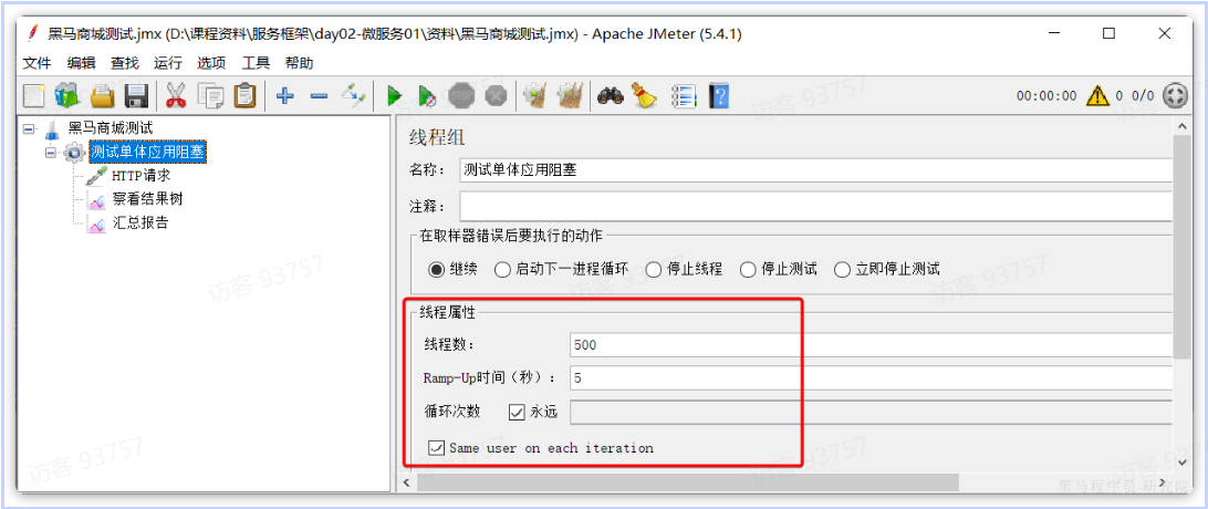 这个接口是一个并发较高的热点接口,我们通过Jemeter来模拟500个用户不停访问。