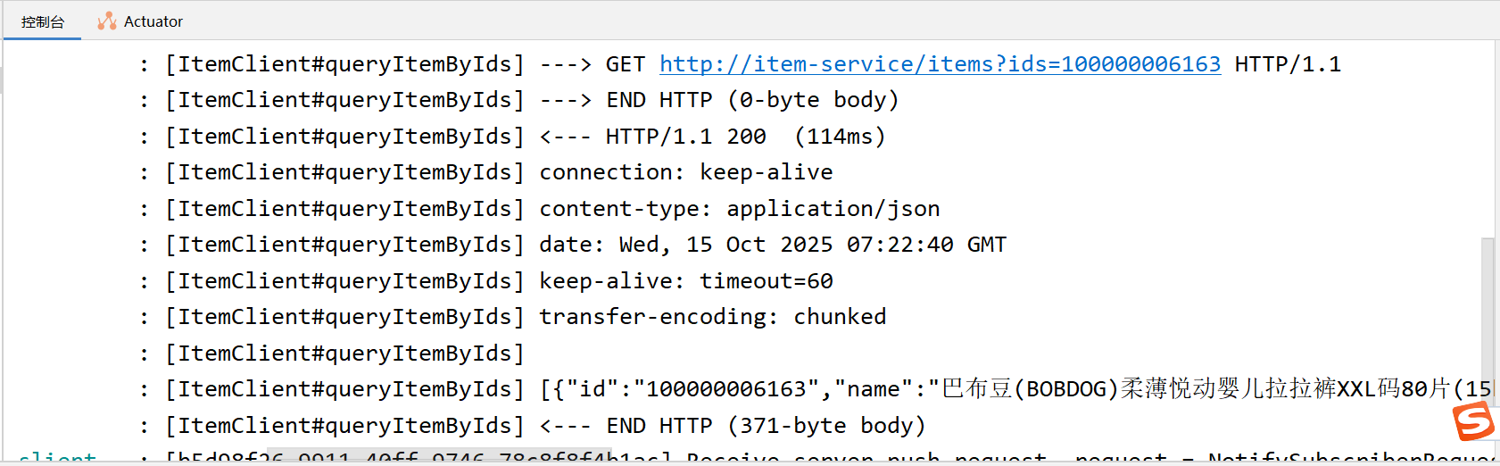 这个接口调用了OpenFeign,但是控制台并没有相关日志的输出,这为未来调试带来不便。