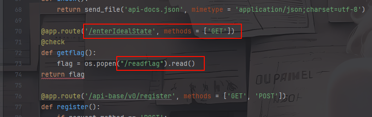 这里可以看到,用GET方式请求/enterIdealState就可以读取readflag,从而返回出来