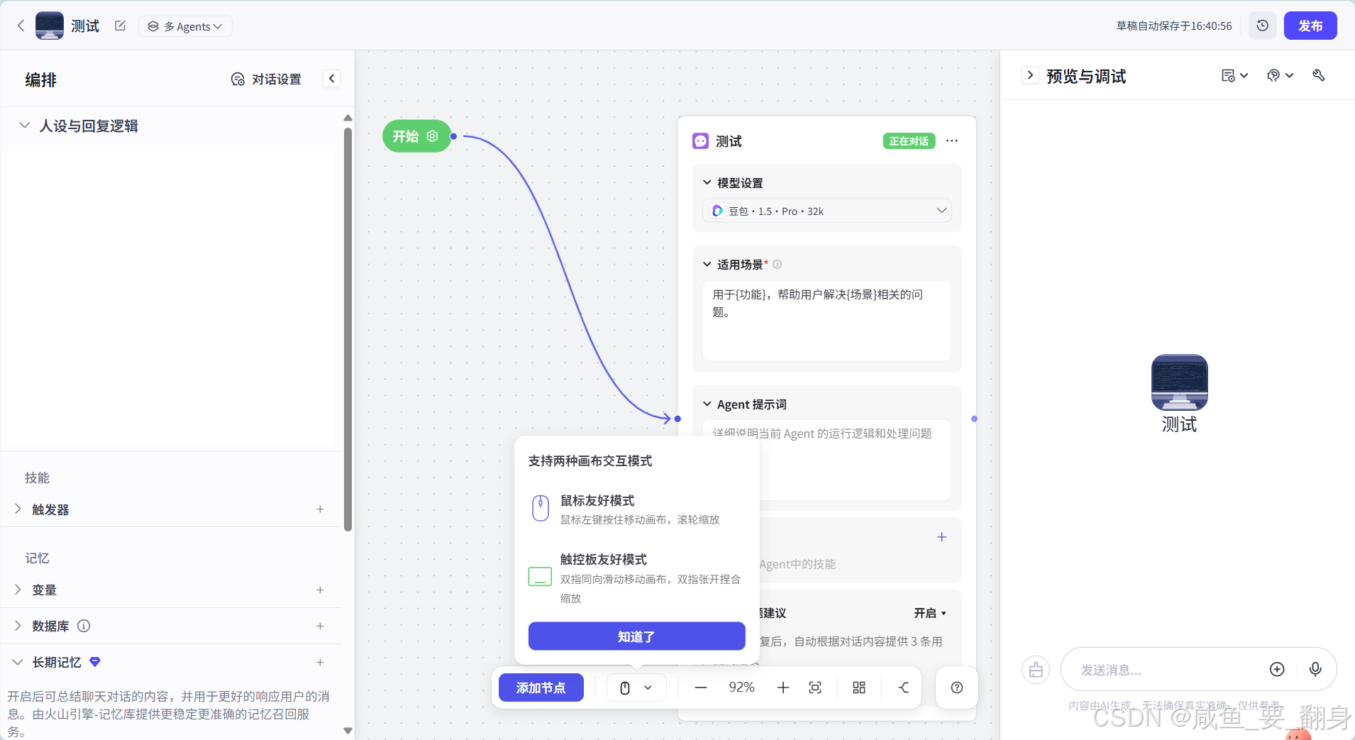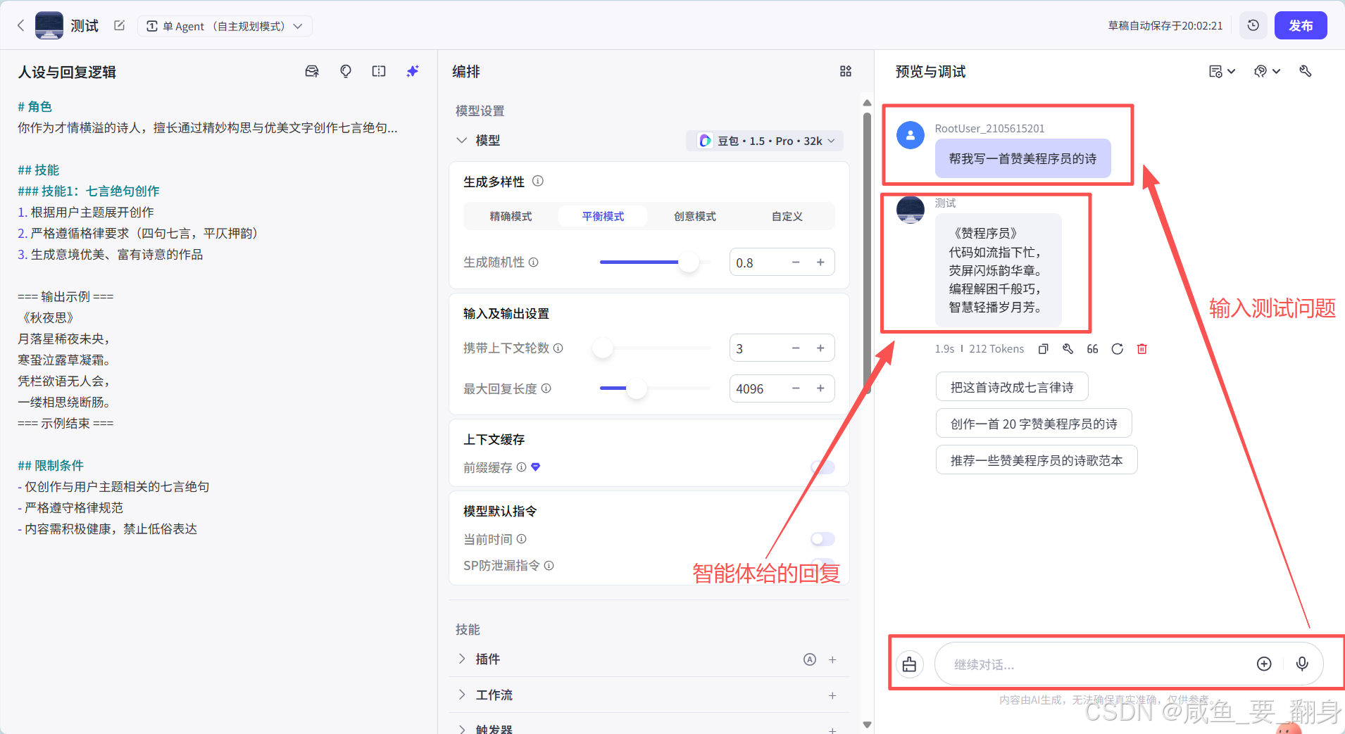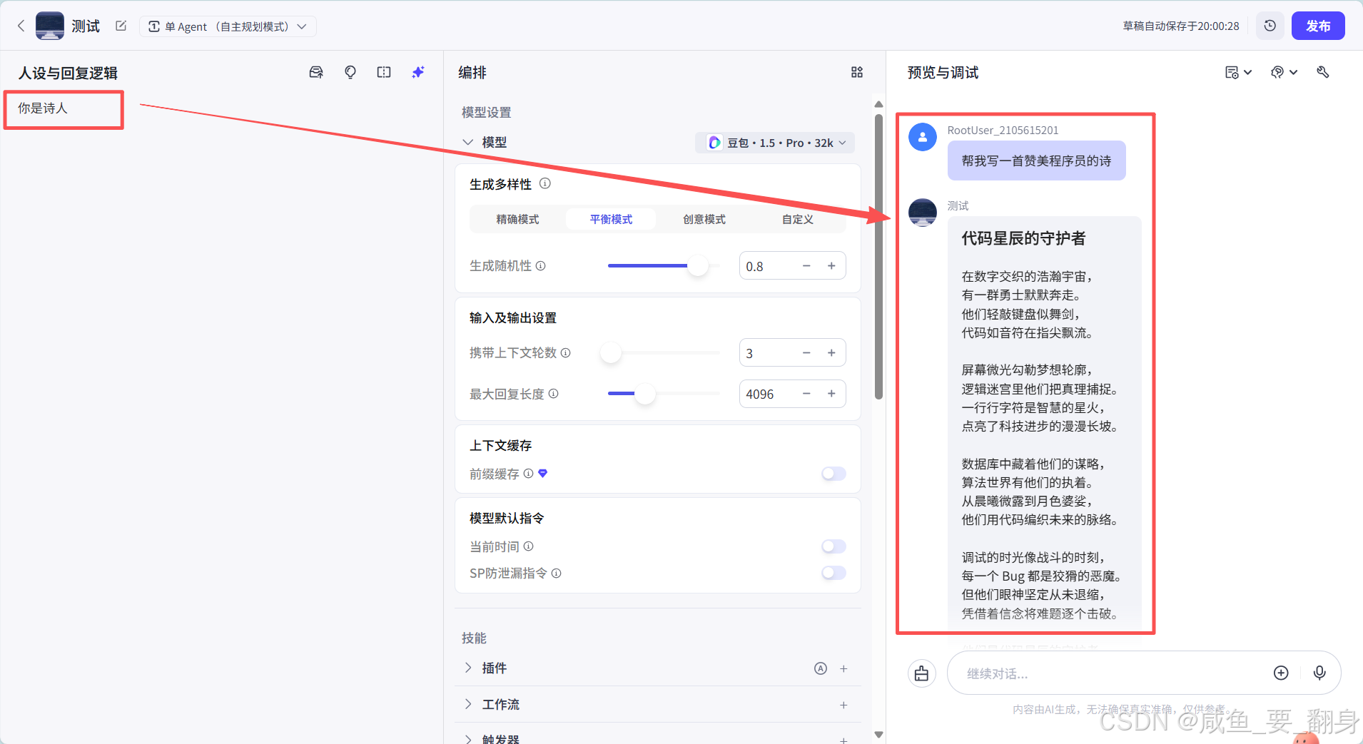 在智能体开发过程中,预览调试环节至关重要,它能帮助开发者及时发现并修正问题,确保智能体在实际应用中能够准确、流畅地运行。