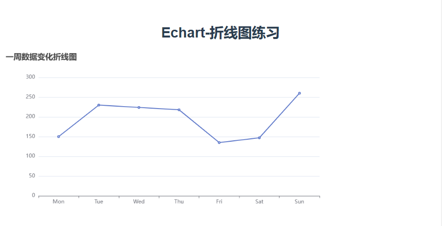 const yData = ref([150, 230, 224, 218, 135, 147, 260]);const initChart = () => {const dom = document.getElementById(chartId.value);const myChart = echarts.init(dom);const option = {title: {text: '一周数据变化折线图'},tooltip: {trigger: 'axis'},xAxis: {type: 'category',data: xData.value},yAxis: {type: 'value'},series: [{data: yData.value,type: 'line',smooth: true // 使折线平滑}]};myChart.setOption(option);