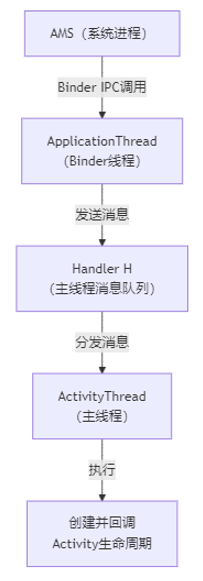 ② 接收远程请求: AMS通过Binder IPC,调用ApplicationThread
